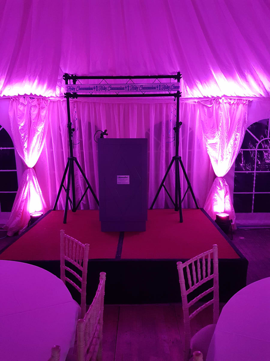 can be as simple as adding some uplighters, or it can involve an entire top to toe lighting design specifically for a venue. We stock a wide variety of lanterns including LED and theatrical lanterns, enabling us to provide many different event lighting solutions.
