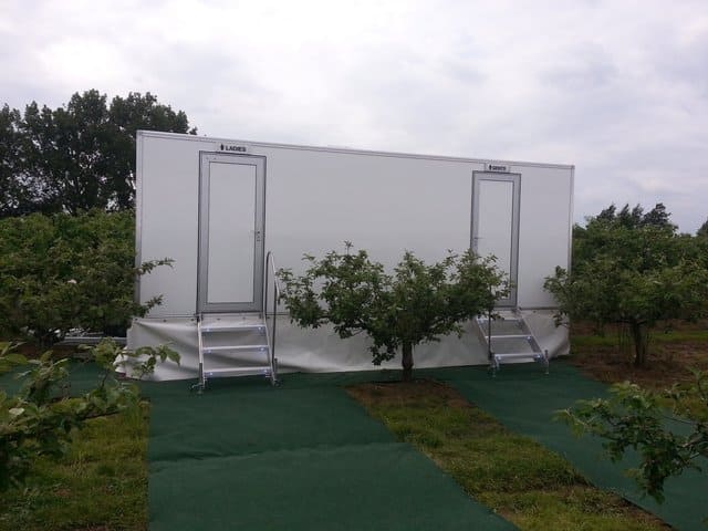 Our VIP luxury toilets have 3 toilets in the ladies area with hot water, soap and luxury hand towels. For the gents there are three urinals and a separate toilet area. Hand basins with hot water, soap and luxury hand towels are also available. With fresh flushing porcelain toilets, porcelain sinks, luxury hand soap and luxury hand towels, you will impress your guests and offer them a home from home toilet facility.